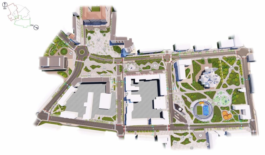 Водночас, розвиток майданів не можна назвати простою задачею. Територія навколо є частково міською, державною і навіть приватною власністю. Лише на самих майданах знаходяться 9 об’єктів культурної спадщини і ще більше довкола. Стало очевидно, що без комплексного інтегрованого планування не вдасться отримати якісну та цілісну картину центральної локації міста.